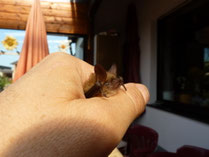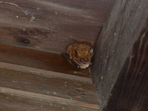 mehr zu finden ist. Wie gesagt, Fledermäuse sind oft Spaltenbewohner. Bei Eintritt der Dämmerung öffnet man die Fenster im Raum und die Fledermaus fliegt i.d.R. nach wenigen Runden